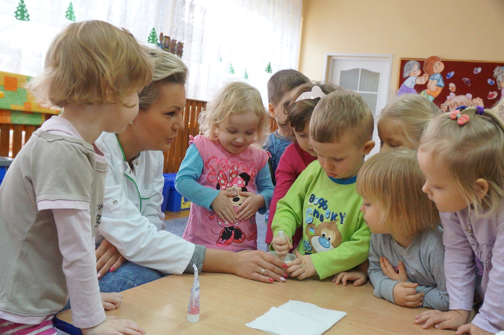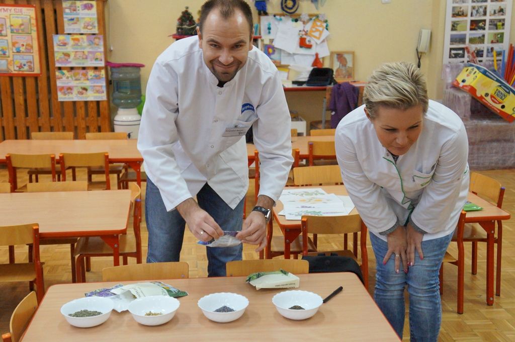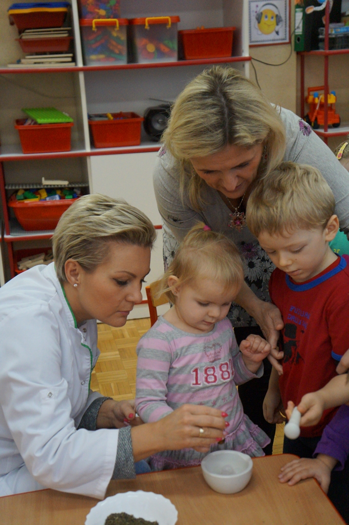 Tym razem zamiast w aptece, pojawiliśmy się w przedszkolach naszych córek. Zarówno trzy jak i sześciolatki wykazywały spore zainteresowanie tym co im pokazywaliśmy. Jak wygląda i pachnie mięta, lawenda lub rumianek ? W jaki sposób można zrobić maść do rąk ?